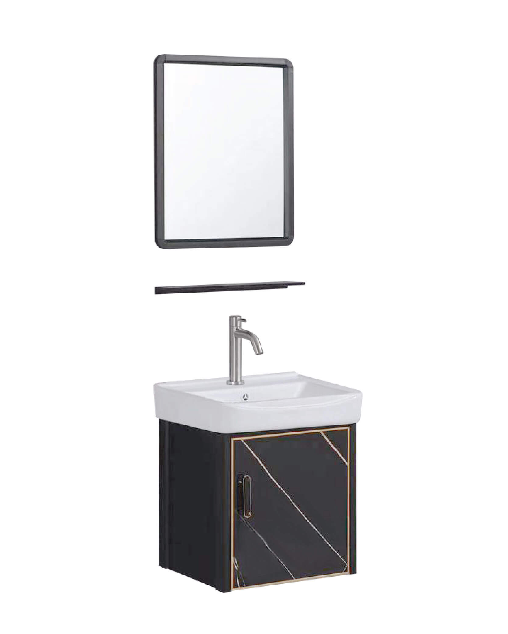 Black Bathroom Cabinet Set with Mirror, Wall Shelf & Accessories